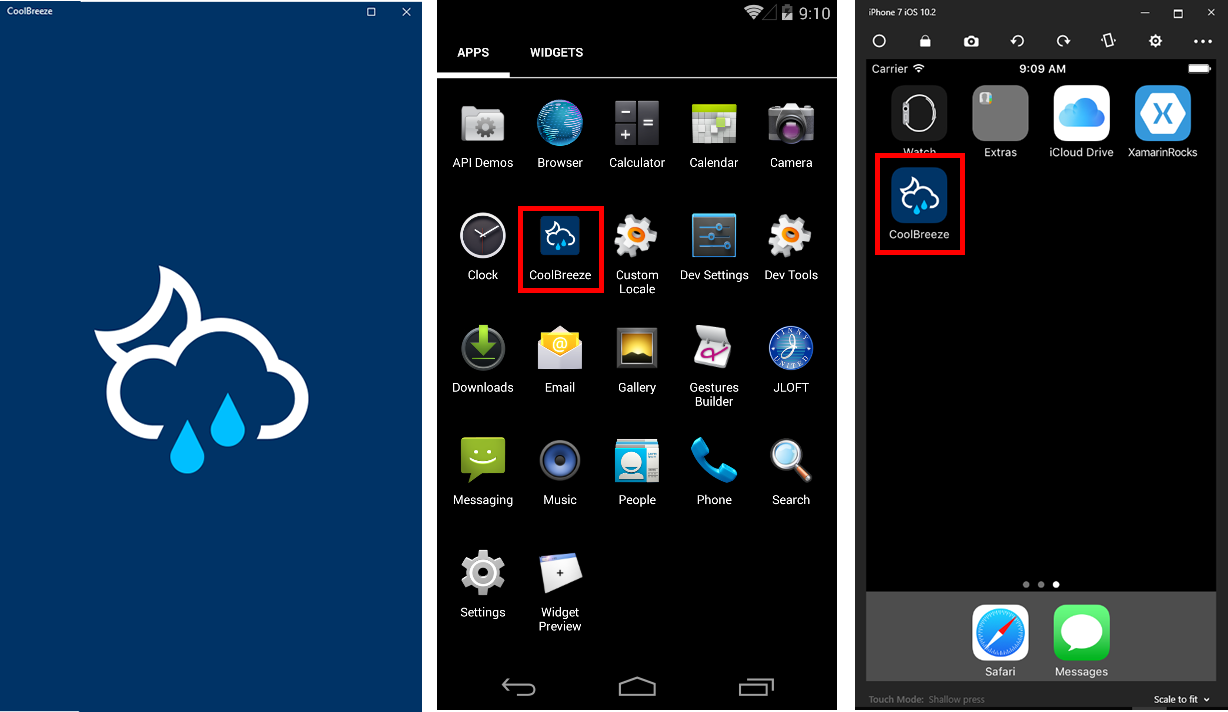 </Package>Now it's time to run the app for the first time. Let's start with the Android version of the app. Ensure that the Android project is selected as the startup project by right-clicking the CoolBreeze.Android project in Solution Explorer and selecting Set as StartUp Project.