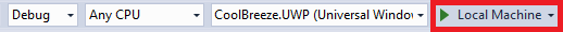 Click the Run button at the top of Visual Studio to launch the UWP version of CoolBreeze on the local machine.