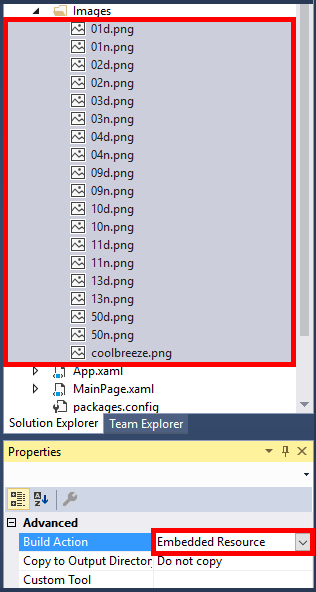 In Solution Explorer, expand the "Images" folder to view all of the images that you added. Select all of those images. Then go to the "Properties" pane and change the "Build Action" from Content to Embedded Resource. These images will now be accessible on all platforms.