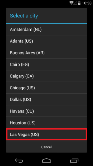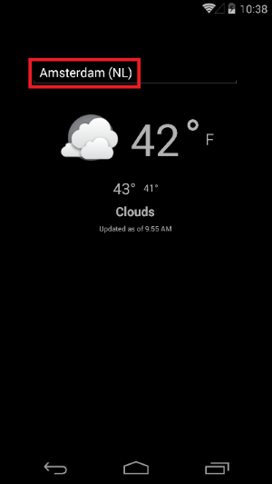 Confirm that CoolBreeze shows the current weather in Amsterdam. Then tap Amsterdam (NL) to display a list of cities.