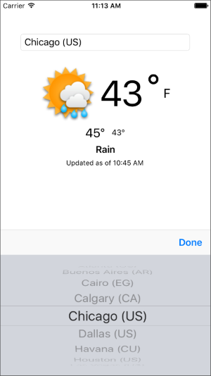 In this exercise, you will run the CoolBreeze app and use it to view real-time weather information in various cities.