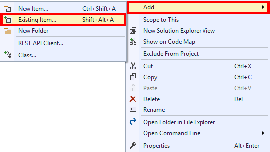 Right-click the "Images" folder and select Add > Existing Item.... Then browse to the "Resources\Portable\Images" folder in the zip file containing this challenge.
