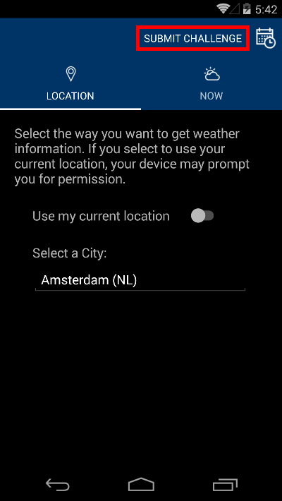 }Now it's time to run the app and submit your work. Launch the app and click SUBMIT CHALLENGE.