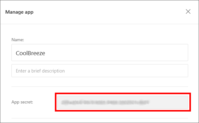 Copy the value in the App secret box to the clipboard.