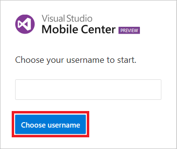 Enter a user name for your Visual Studio Mobile Center account and click Save.