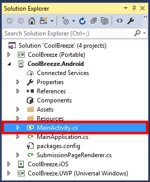 In Solution Explorer, right-click the CoolBreeze.Android project and select Set as StartUp Project.