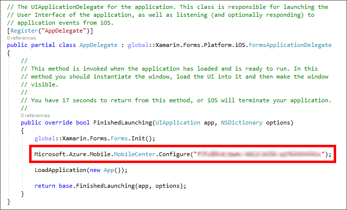 Return to AppDelegate.cs in Visual Studio and replace "IOS_APP_SECRET" with the value on the clipboard.